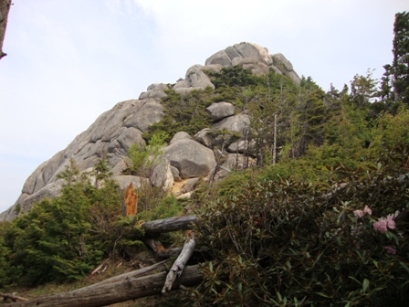 大日岩を見上げます。あのうえまで行けるみたいですが、先を急ぐことにしました。